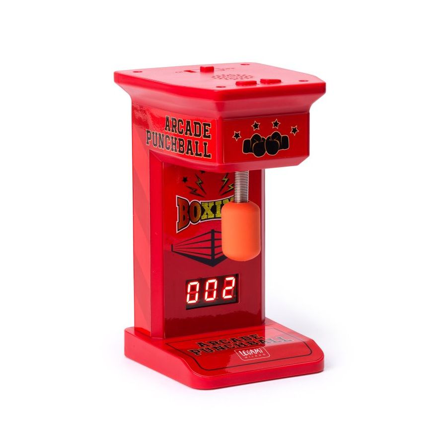Legami arkadespil boksebold mini er et sjovt mini arkadespil, hvor du slår på den lille boksebold med fingrene og prøver at samle så mange point som muligt. Spillet har tre forskellige spilintervaller på 45, 90 og 120 sekunder, så børn kan udfordre sig selv eller konkurrere med venner om den højeste score. Pointene vises på det digitale display, mens spillet er i gang.