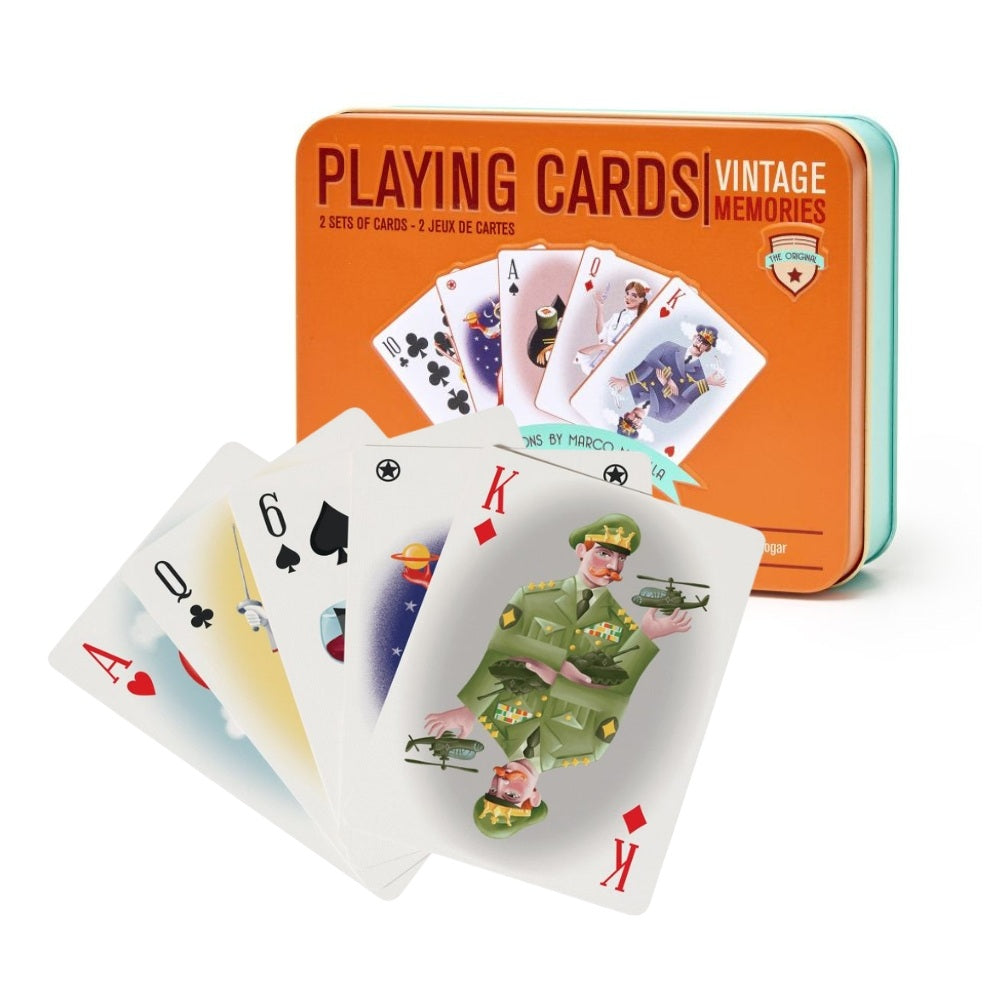Metalæsken beskytter kortene og gør det nemt at holde styr på dem, når de ikke er i brug. Samtidig gør æsken sættet perfekt som en lille gave eller som fast indslag i familiespil på rejser og hyggelige aftener.
