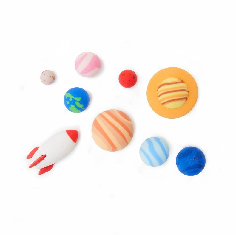 Når blyantsstreger skal viskes ud, er Legami viskelæder solsystemet klar til mission. De små planeter fungerer som almindelige viskelædere og hjælper med at rette fejl i tegninger, matematikopgaver eller skriveøvelser.