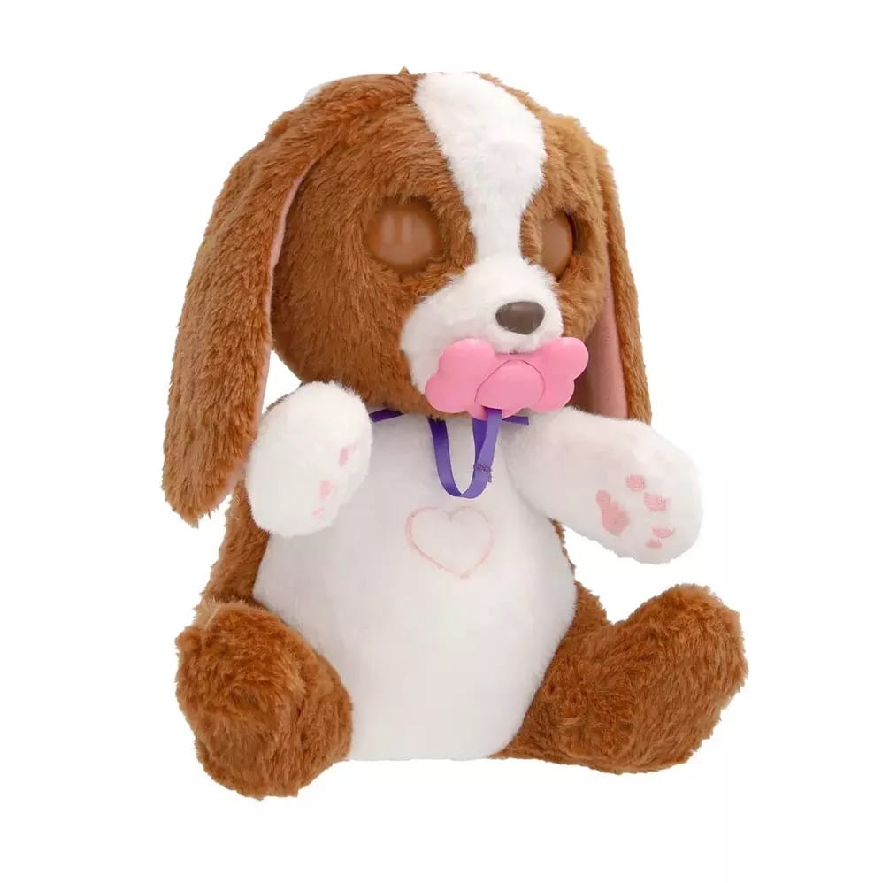 Baby Paws interaktiv hund dyrlægetjek reagerer med hele 23 forskellige lyde og bevægelser. Den kan pibe, sukke og lukke øjnene, når man giver den sutten. Med det sjove dyrlægetilbehør, sprøjte, termometer og stetoskop, bliver legen hurtigt til et kærligt tjek, hvor barnet kan undersøge, trøste og tage sig af sin nye pelsede ven. Den er perfekt til rolleleg og giver mulighed for at udvikle empati og omsorg i trygge og fantasifulde rammer.