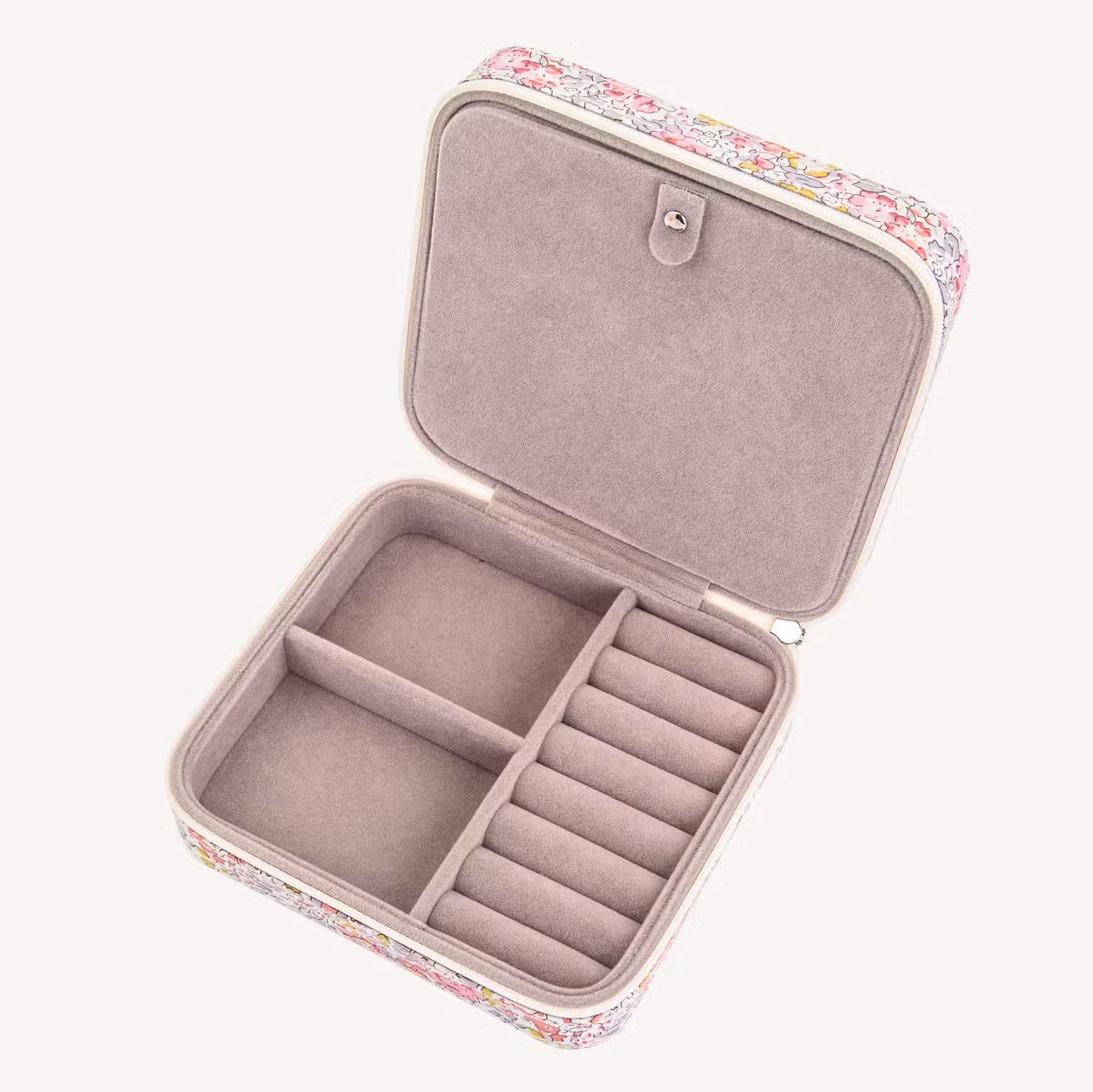 Bon Dep Smykkeskrin Octa Liberty Claire er det ideelle lille skrin til dig, der gerne vil passe godt på dine yndlingssmykker – både derhjemme og på farten. Med sit kompakte og kvadratiske design er det nemt at have med i tasken, samtidig med at det er rummeligt nok til at holde styr på dine fineste skatte. Det smukke ydre gør det til en dekorativ detalje i sig selv, og det bløde velourfor giver en luksuriøs følelse, hver gang du åbner det.