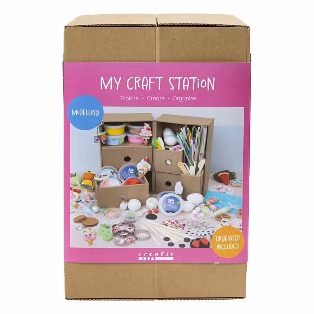 Creative kreaboks modellering er en komplet og overskuelig modelleringsstation, der samler alle kreative materialer ét sted. Boksen er fyldt med spændende modelleringsmasser som Silk Clay®, Foam Clay® og glitter clay, så børn kan forme, trykke, rulle og skabe deres egne små værker fra bunden. Her er både værktøj, udstiksforme og dekorative elementer.