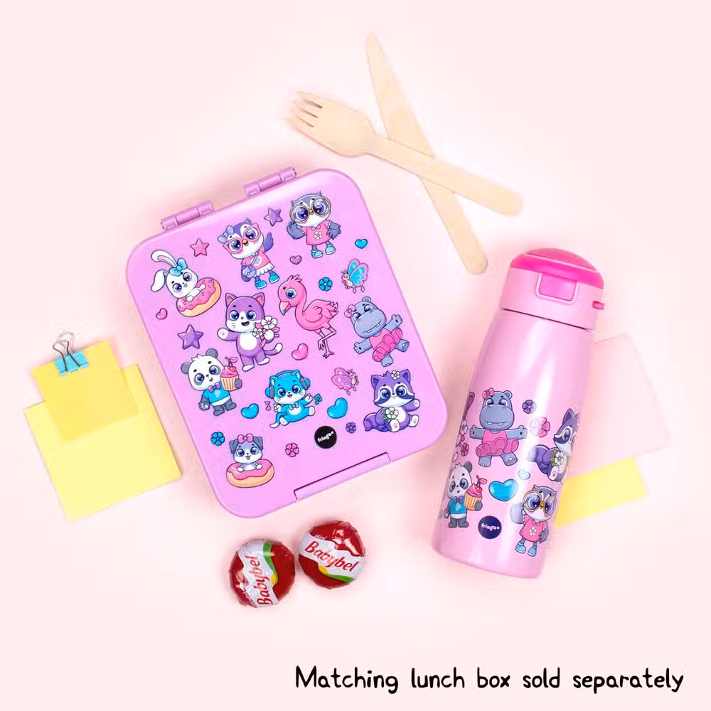 Med Fringoo drikkedunk stål søde dyr bliver det både hyggeligt og praktisk at få nok at drikke i løbet af dagen. Denne fine drikkedunk til børn er pyntet med glade, farverige dyr som flodheste, pandaer og hunde – et design, der med garanti vil bringe smil frem hos både børn og voksne. Det er den perfekte ledsager til skoledagen, sportstasken eller en tur i parken.