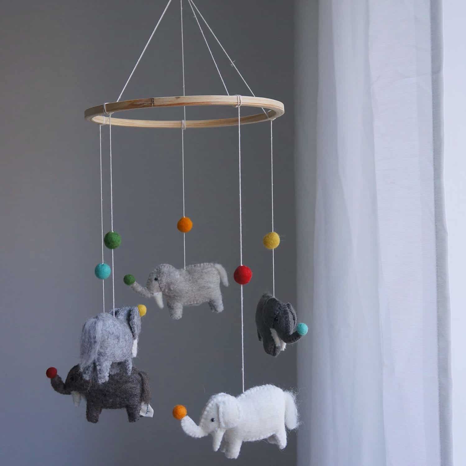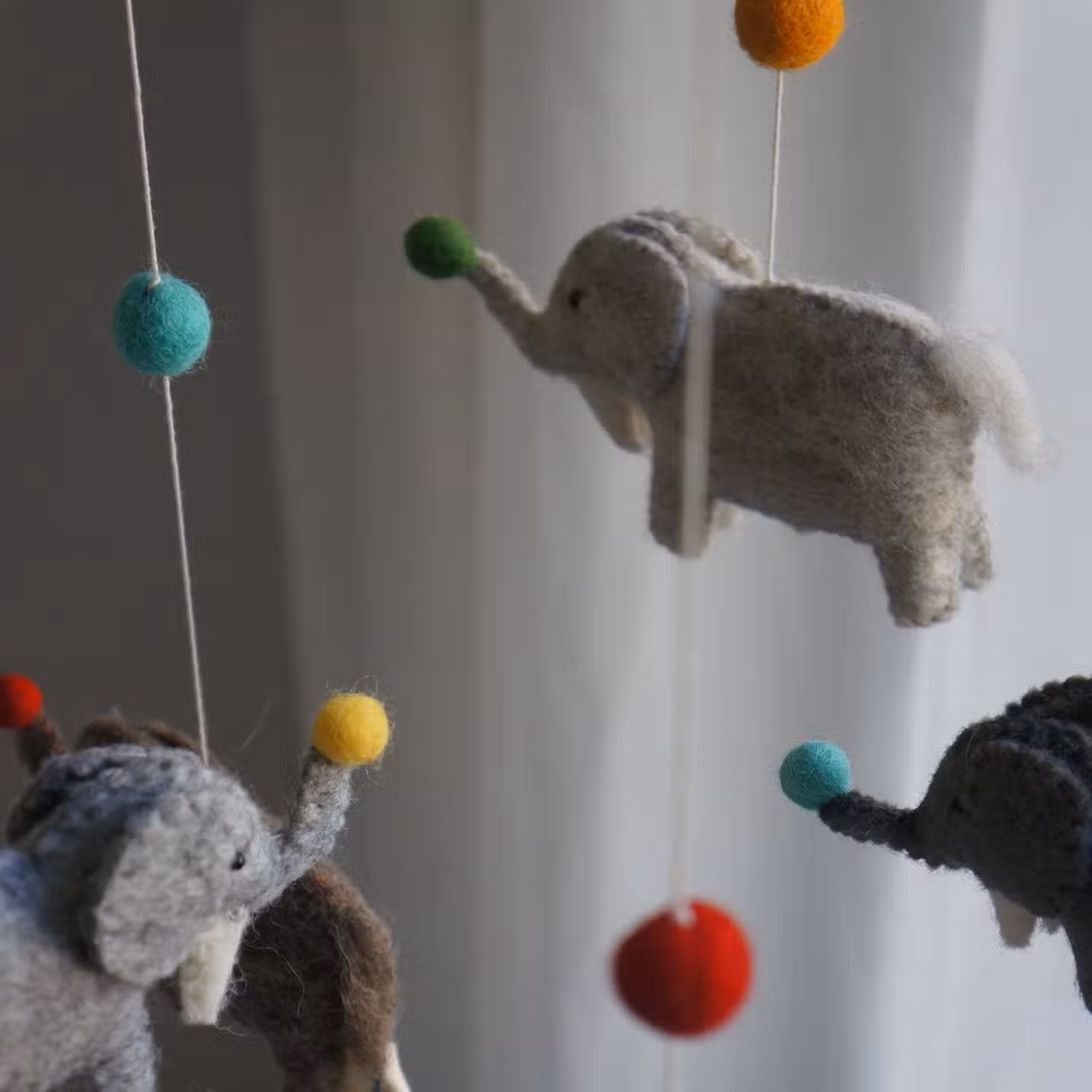 Gamcha uro elefanter passer smukt ind i både moderne og klassisk indretning og bliver hurtigt en fast og elsket del af det lille barns første rum. Husk, at uroen er til dekoration og skal placeres uden for barnets rækkevidde.
