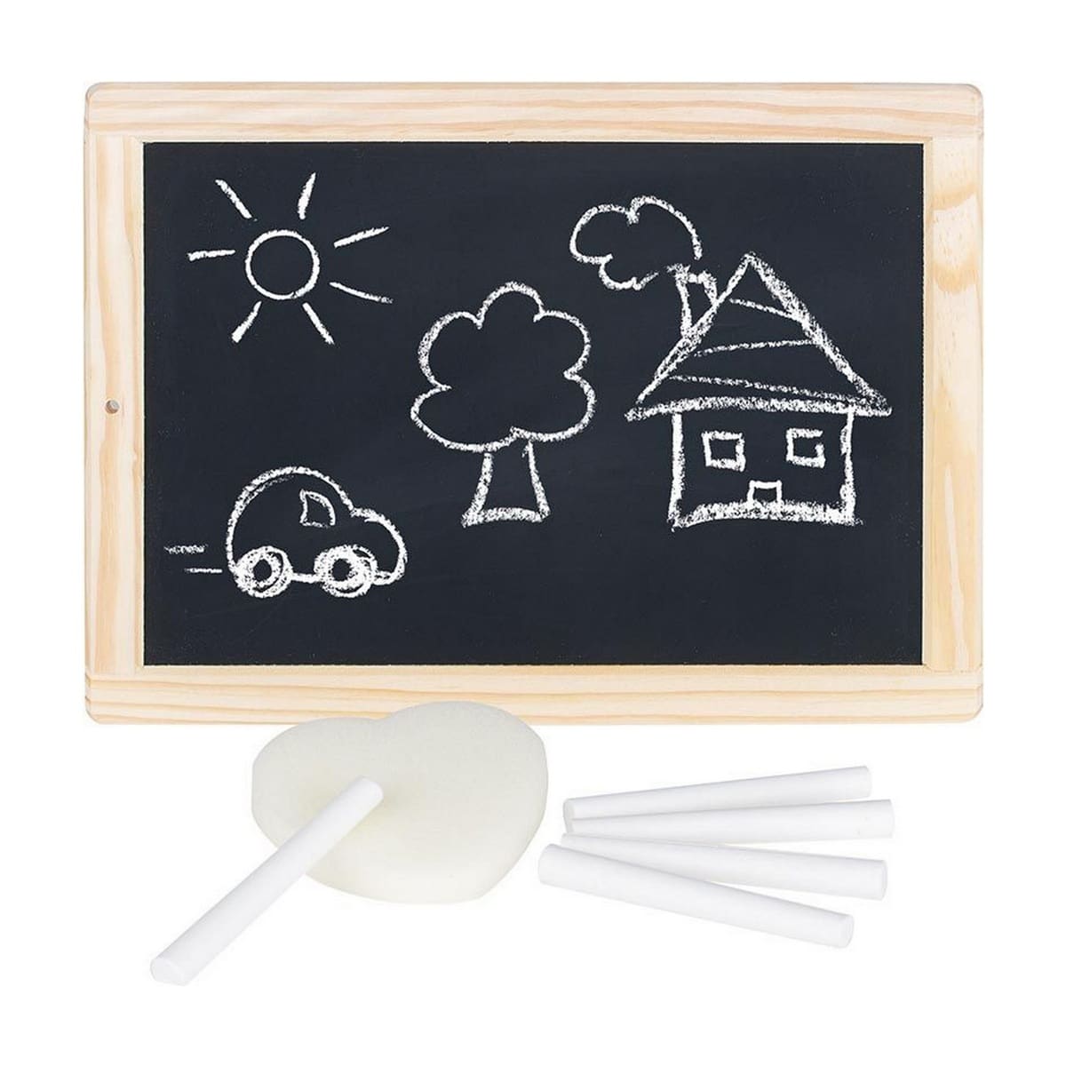 Sættet indeholder: 1 tavle, 1 svamp, 5 stykker kridt