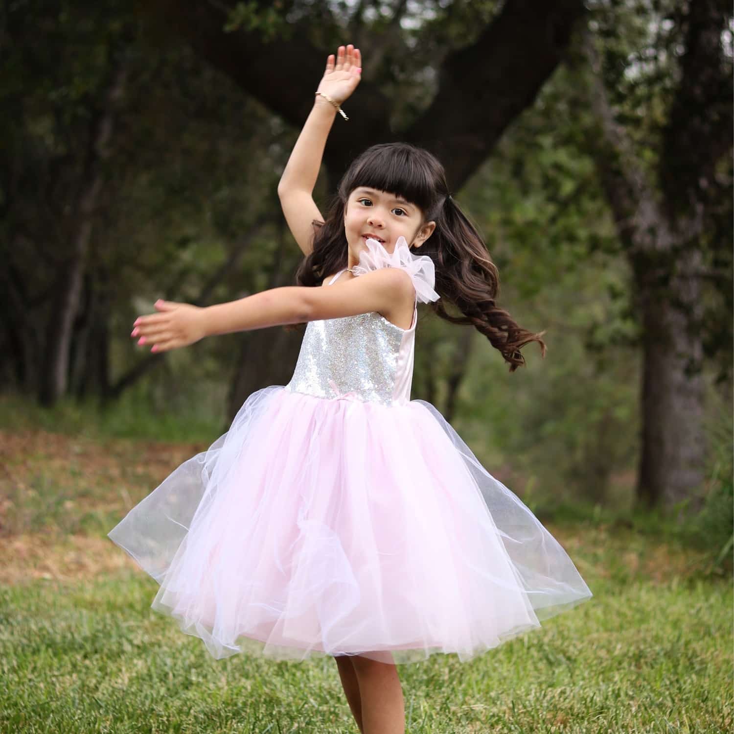 Hop i denne smukke Great Pretenders Prinsessekjole med fine detaljer og vær prinsesse for en dag. Det er en drøm af en kjole med tyl på ærmer og glimmer detaljer, som er med til at gøre den ekstra fin. Kjolen er med tylærmer og tylskørte samt et bærestykke med sølv pallietter.