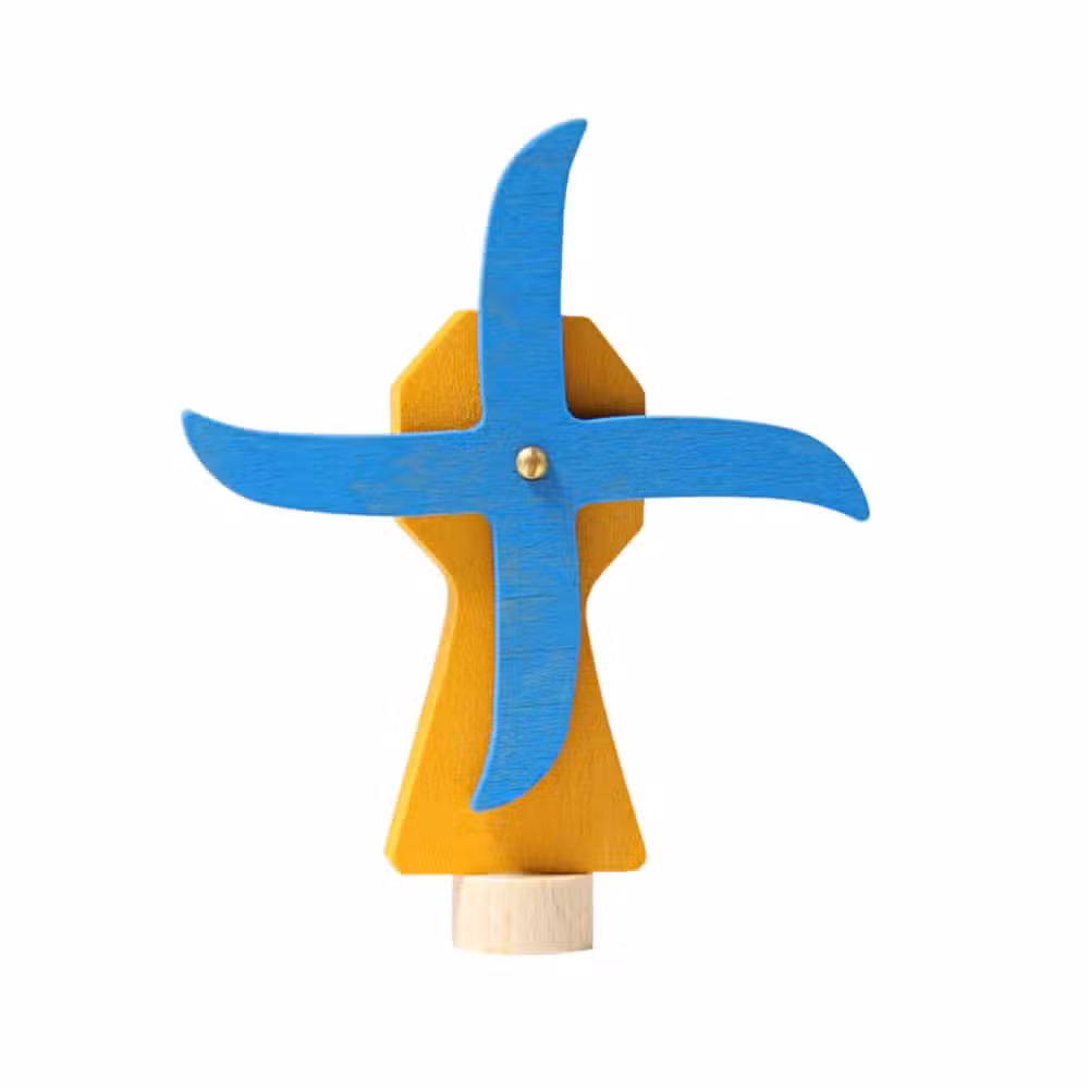Grimms træfigur vindmølle er en fin og finurlig lille dekoration, der bringer liv og fantasi ind i fødselsdagsfejringen. Den smukke kombination af blå vinger og orange krop gør den til et hyggeligt blikfang på fødselsdagsbordet, i vindueskarmen eller på årstidsbordet. Figuren passer perfekt i Grimms fødselsdagsring.