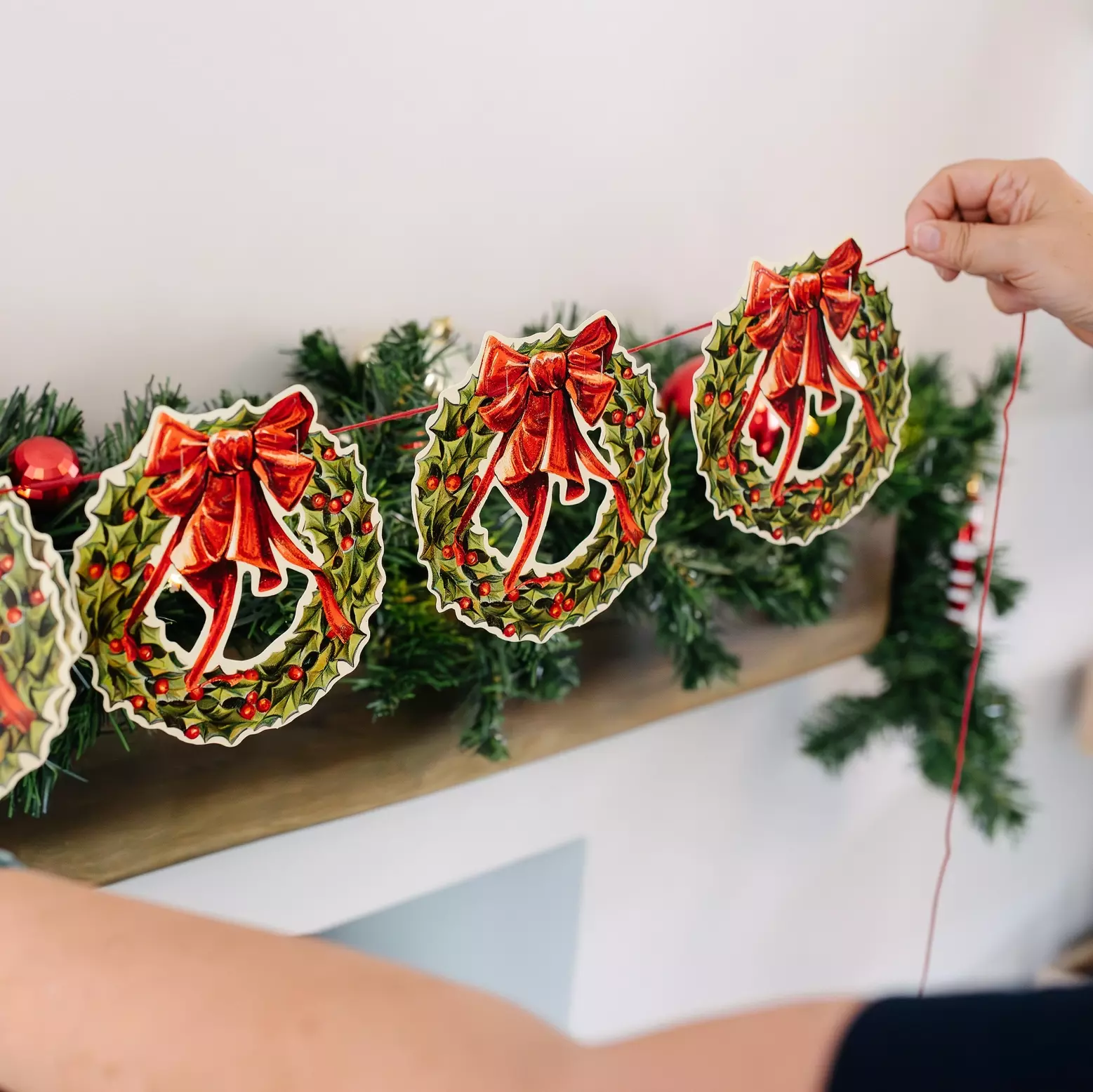 Sættet indeholder: 1 guirlande med 10 julekranse