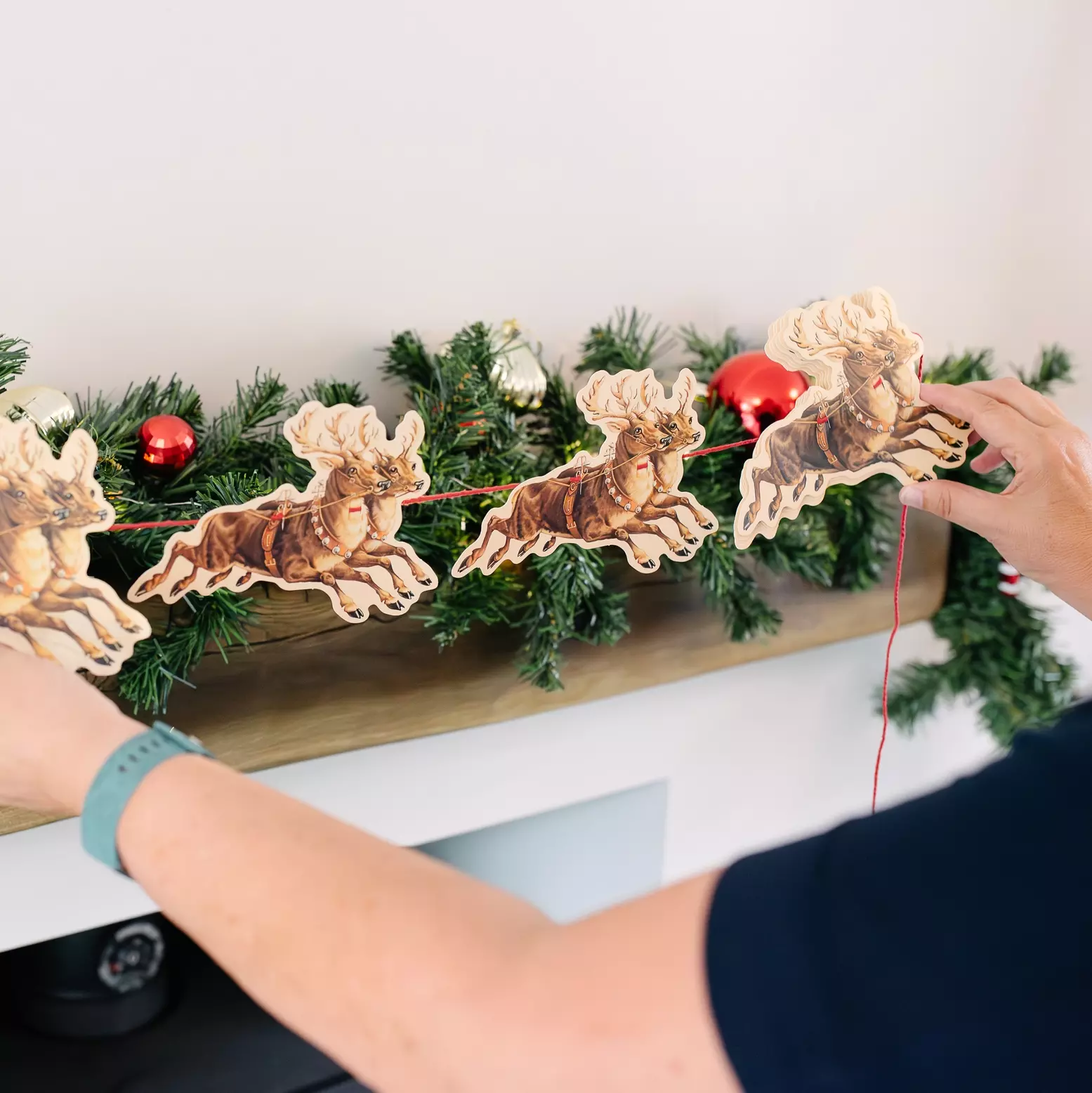 Sættet indeholder: 1 guirlande med julemand i slæde og 9 rensdyr