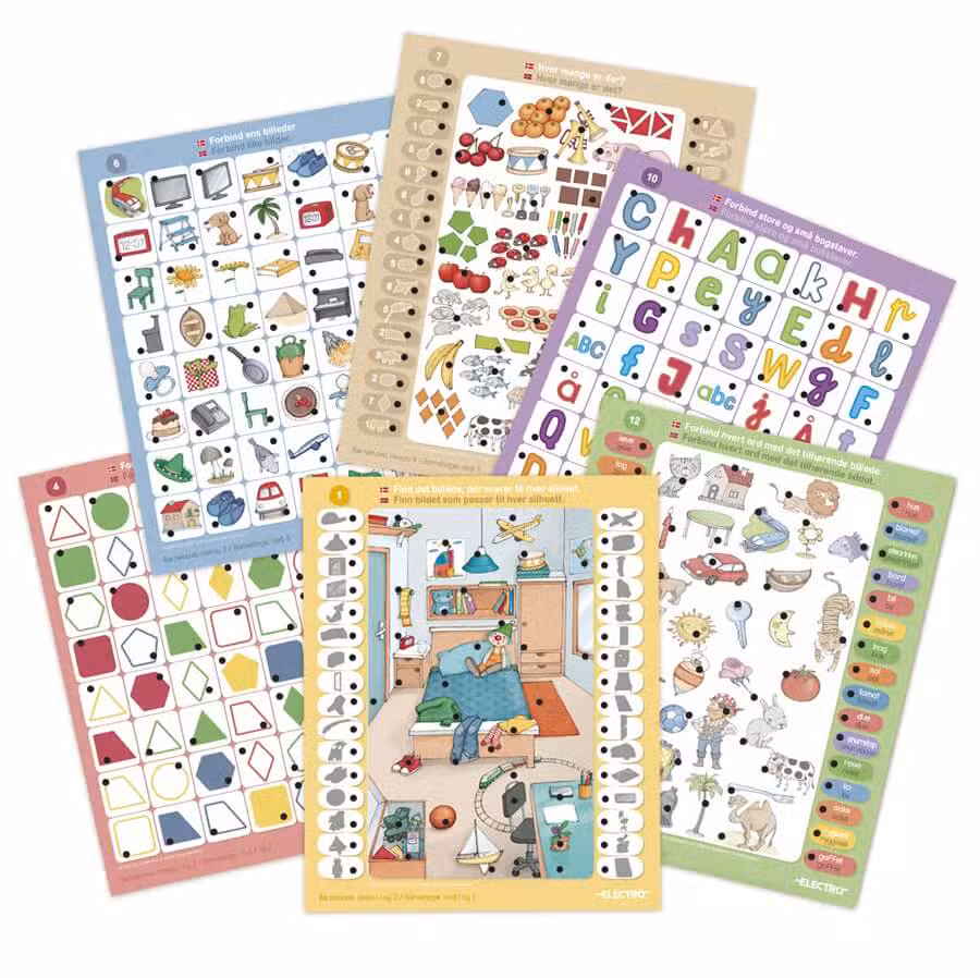 Jumbo electro før skolealderen er perfekt til nysgerrige børn fra 4 år, der elsker at udforske og lære nyt. Med 12 farverige kort og over 350 opgaver lærer barnet at iagttage, forbinde ting og bruge sin hukommelse på en sjov måde. Det er en fantastisk kombination af leg og læring, som gør det lettere for barnet at forstå emner, det senere vil møde i skolen. Legen stimulerer udviklingen og gør barnet klar til nye udfordringer.