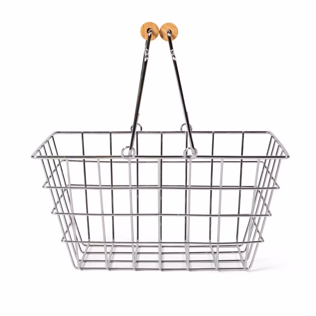 Mamamemo indkøbskurv metal er en skøn og klassisk indkøbskurv børn vil elske at bruge i deres leg med madvarer og butik. Kurven er lavet i robust metal og har fine træhåndtag, som gør det let for små hænder at bære den rundt – uanset om legen foregår i legekøkkenet, stuen eller i haven.