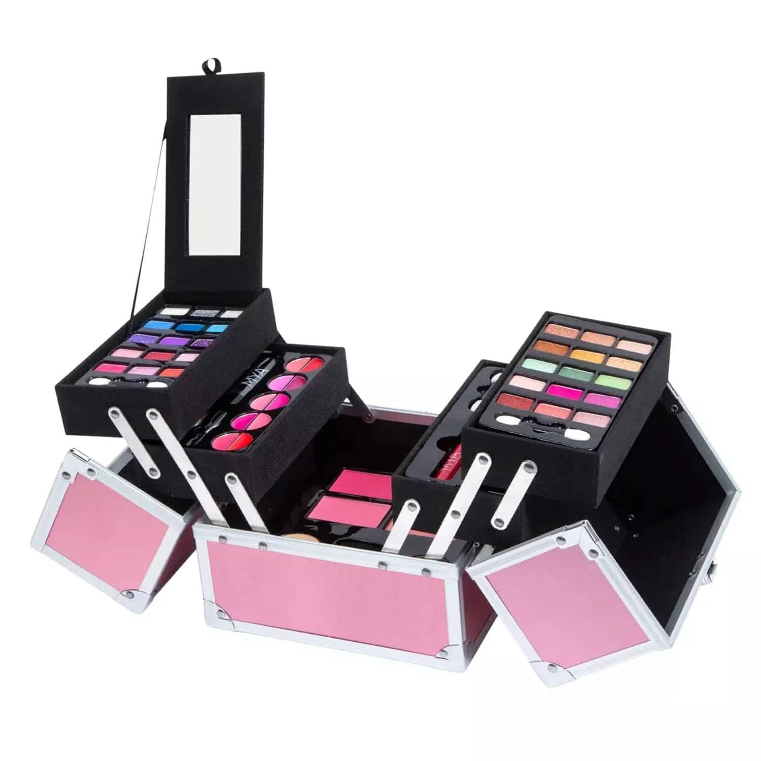 Sættet indeholder: Øjenskygger, blush, læbefarver, concealer, spejl