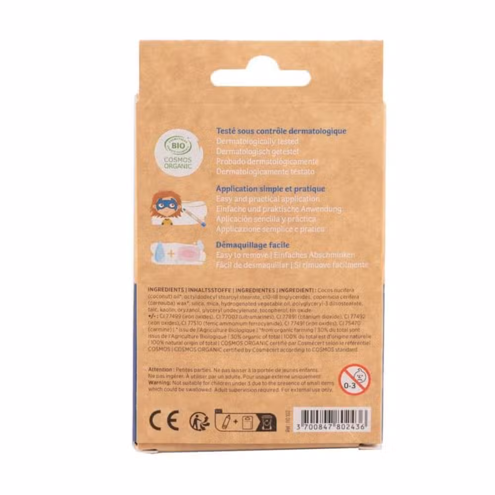 Namaki sminkeblyanter intergalactic er COSMOS Organic certificeret af Cosmécert, hvilket betyder, at produktet er fremstillet efter strenge økologiske og bæredygtige standarder. Blyanterne er lavet af 100 % naturlige ingredienser, hvoraf 30 % stammer fra økologisk landbrug. De indeholder bl.a. kokosolie, carnaubavoks og naturlige mineralpigmenter, som gør dem både hudvenlige og behagelige at bruge.