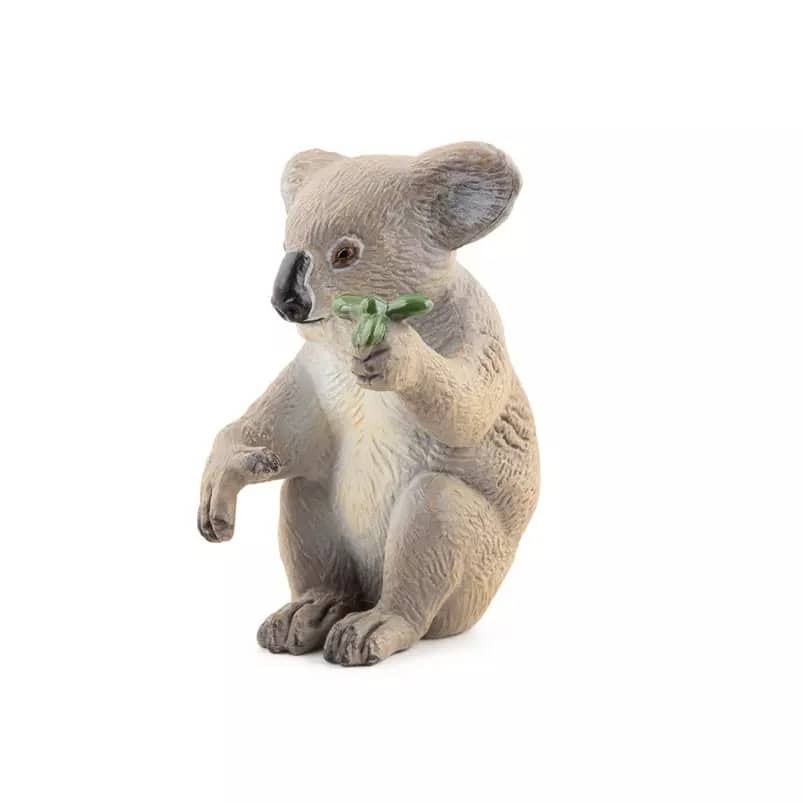 Papo figur koala er en sød og naturtro koalabjørn, der passer perfekt ind i enhver samling af vilde dyr. Med sit rolige udtryk og det lille eukalyptusblad i hånden ser den ud, som om den netop har sat sig for at tage en pause i træets skygge.