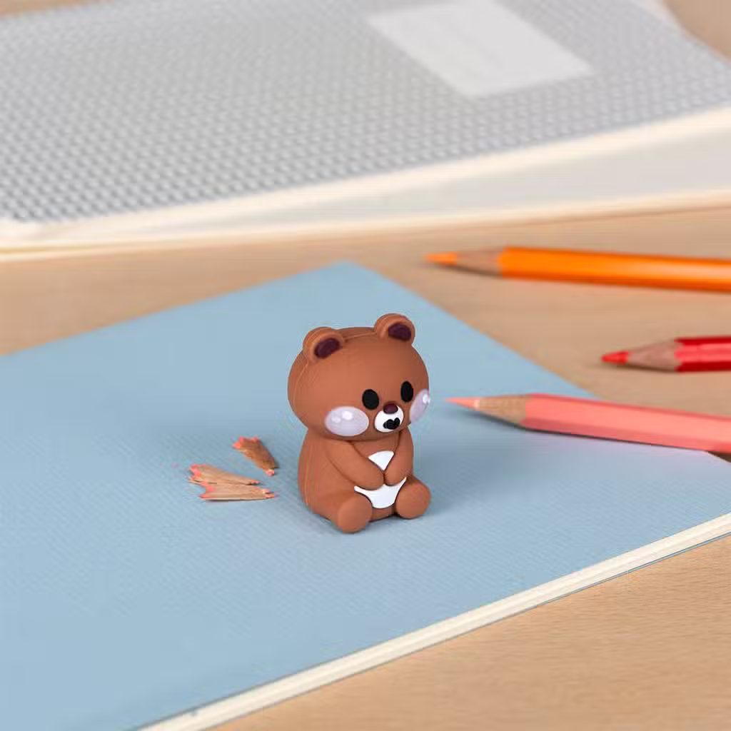Så når blyanten mister sin spids, træder bjørnen til og klarer opgaven. Den gør hverdagens skoleopgaver lidt sjovere.