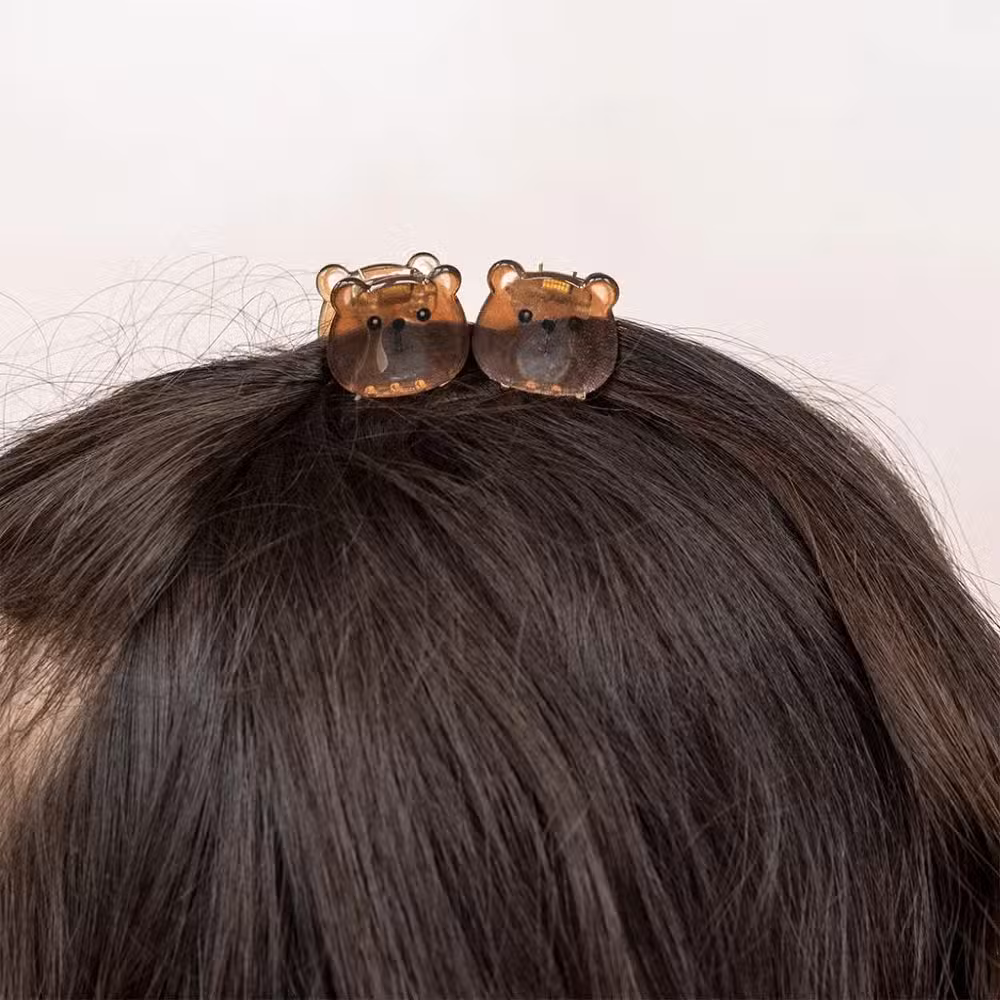 Rex London hårklemmer mini bjørn er et sæt med to små og funktionelle hårklemmer, designet med et sødt bjørneansigt i gennemsigtig brun plast. Disse miniklemmer er ideelle til børn, der gerne vil holde håret væk fra ansigtet på en sjov og praktisk måde.