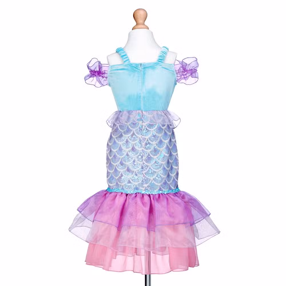 Souza Havfrue Kostume Naiara er perfekt til børn, der drømmer om havets magiske verden fyldt med glimmer, bølger og hemmelige eventyr. Kjolen ligner noget, en rigtig havfrue ville have på, når hun svømmer rundt blandt fisk og perler dybt nede i havet. De fine farver og det skinnende mønster gør det ekstra sjovt at tage kostumet på og forsvinde ind i legen.