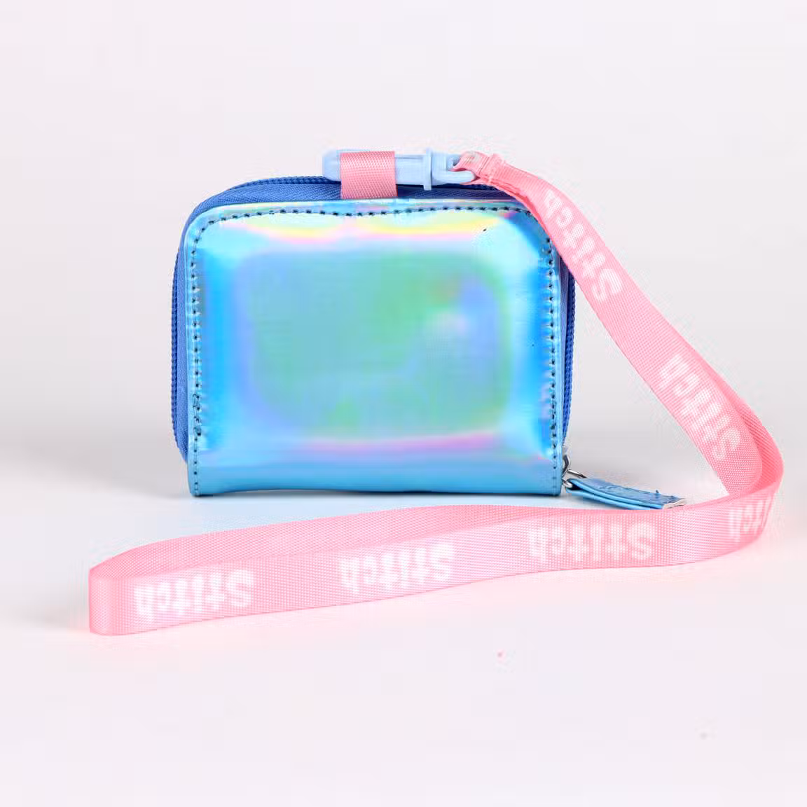 Den medfølgende pink håndledsrem med “Stitch” tekst gør det nemt at holde styr på pungen, uanset om barnet er ude at lege, på ferie eller med i skole. Stitch pung til børn har et rummeligt rum med lynlås, der passer perfekt til småpenge, kort eller små hemmelige ting, som kun børn forstår vigtigheden af.