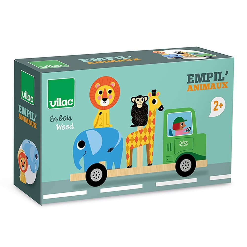Vilac Traktor Med Anhænger Og Stabledyr er et farverigt og fantasifuldt trælegetøj der inviterer til timevis af leg og læring. Med en grøn traktor og tilhørende anhænger fyldt med fire skønne dyr i træ nemlig elefant, løve, giraf og abe bliver barnet en del af sin helt egen lille safari. De forskellige dele kan stables og flyttes rundt hvilket giver rig mulighed for både fri leg og målrettede aktiviteter.
